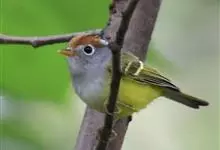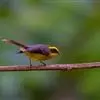 棕脸鹟莺:体长10厘米,是一种色彩亮丽而有特色的莺鸟。头栗色,具黑色侧冠纹。上体绿,腰黄色。下体白,颏及喉杂黑色点斑,上胸沾黄。与栗头鹟莺的区别在头侧栗色,白色眼圈不显著且无翼斑。…全部>>