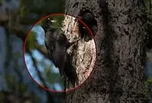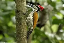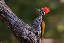 白腹黑啄木鸟,是啄木鸟科、黑啄木鸟属的中型鸟类,体长43-46厘米,头顶具长的红色羽冠,颚纹亦为红色,其余头、颈、胸和上体黑色,腰和腹白色,飞翔时白色腋羽和翅下覆羽亦明显可见。雌鸟头顶黑色,…全部>>