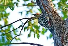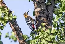 棕腹啄木鸟为啄木鸟科,啄木鸟属是中等体型的鸟类,体长约20厘米。头顶部具红色斑带。脚强健,有趾4个,其中2个向前,2个向后,各趾的趾端均具有锐利的爪,巧于攀登树木。尾羽的羽干刚硬如棘,…全部>>