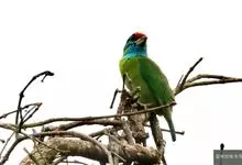 蓝喉拟啄木鸟,是须鴷科、拟啄木鸟属的鸟类。蓝喉拟啄木鸟为小型鸟类,体长20-23厘米。前额至头顶鲜红色,其上有一宽阔的黑色横带,将此红色分为前后二块;头侧、颏、喉蓝色,下喉两侧各具一红色点斑。…全部>>