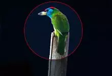 黑眉拟啄木鸟,为须䴕科、拟啄木鸟属的小型鸟类,体长20-25厘米,外形和金喉拟啄木鸟非常相似,但具粗著的黑色眉纹,头侧和耳覆羽以及下喉蓝色而不为银灰色,前颈两侧各有一块鲜红色斑。全部>>