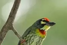 金喉拟啄木鸟,是须鴷科、拟啄木鸟属的鸟类。金喉拟啄木鸟为小型鸟类,体长19-24厘米。额深红色,头顶金黄色,后枕具一大块深红色斑,耳羽和头侧银灰色,上体草绿色,颏和上喉金黄色,下喉淡银灰色,…全部>>