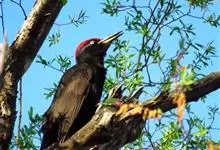 黑啄木鸟属䴕形目、啄木鸟科,是一种大型的啄木鸟,体长45-47厘米,翼展64-68厘米,体重300-350克,寿命11年。是啄木鸟中最大的一种。…全部>>