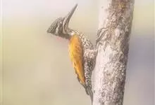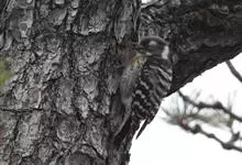 三趾啄木鸟,是啄木鸟科、啄木鸟属的小型鸟类,体长20-23厘米,雄鸟头顶金黄色,雌鸟黑色而具白色斑点。眼至耳覆羽黑色,眼后有一条白色纵纹,颊纹白色,颚纹黑色,甚为醒目。枕和后颈黑色,…全部>>
