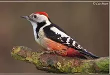 星头啄木鸟是䴕形目啄木鸟科啄木鸟属鸟类,又称北啄木鸟、红星头喯打木、红星啄木等。头顶灰褐色,虹膜褐色,嘴铅灰色,脚灰黑色。雄鸟眼后上方具红色条纹,宽的白色眉纹一直延伸到颈侧,后颈、上背和肩黑色,…全部>>