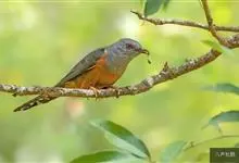 棕腹杜鹃为杜鹃科杜鹃属的鸟类,俗名棕腹鹰鹃、小鹰鹃。头顶、后颈、头侧、背和两翅表面石板灰色。虹膜橙色至朱红色,眼周黄色,上嘴角黑色,基部及下嘴角绿色,脚亮黄色。分布于中国南邻国家以至马来群岛、北抵前…全部>>