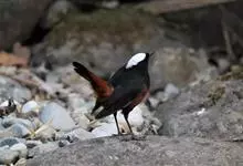 红头咬鹃: 体大,体长约33厘米,体重75-110克。头、颈暗绯红色;背、肩锈褐色。两翅黑色,翅上覆羽和内侧飞羽密被白色细虫蠹斑纹,初级飞羽黑色,外侧具白色羽缘;腰和尾上覆羽较多锈色。中央尾羽深栗色,…全部>>