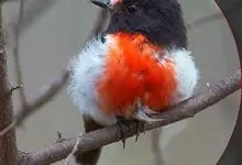 燕雀属小型鸟类,体长14-17厘米。嘴粗壮而尖,呈圆锥状。雄鸟从头至背辉黑色,背具黄褐色羽缘。腰白色,颏、喉、胸橙黄色,腹至尾下覆羽白色,两胁淡棕色而具黑色斑点。两翅和尾黑色,翅上具白斑。…全部>>