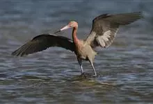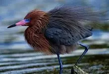 棕颈鹭:是一种中型涉禽,体长68-82厘米,翼展116-124厘米,体重700-850克。雌雄同色。体形呈纺锤形,体羽疏松。嘴长而尖直,翅大而长,脚和趾均细长。有黑头粉红色的鸟喙。腿和脚蓝黑色。…全部>>
