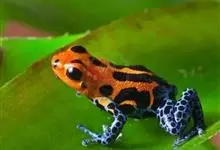 箭毒蛙,是无尾目箭毒蛙科箭毒蛙属动物。箭毒蛙体形较小,一般长1-6厘米,身上的颜色多为黑色与红色、黄色、橙色、绿色等;皮肤内有粘液分泌腺,能使皮肤随时保持湿润;四肢布满鳞纹;足间无蹼。…全部>>