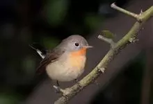 橙胸姬鹟:体长12-16厘米,是一种体型略小的林栖型鹟。尾黑而基部白,上体橄榄褐色,额具一白色横带,两端向上延伸至眼上形成眉斑。翼橄榄色,下体灰。成年雄鸟额上有狭窄白色并具小的深红色项纹,常不明显。…全部>>