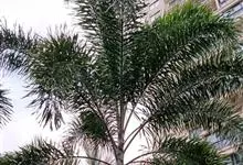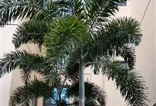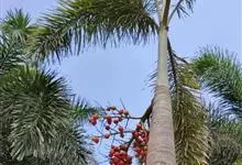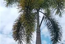 狐尾椰是棕榈科狐尾椰属的常绿乔木;木植高大通直,茎干单生,茎部光滑,有叶痕,略似酒瓶状;叶色亮绿族生茎顶,羽状全裂,小叶披针形,轮生于叶轴上,形似狐尾;穗状花序,分枝较多;雌雄同株;果卵形,…全部>>