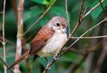 牛头伯劳,又称“红头伯劳”,是伯劳科、伯劳属下的一种鸟类。牛头伯劳全长可达220毫米。喙强健具钩和齿,头顶及枕部栗红;背羽灰褐色;尾羽褐色;黑色贯眼纹明显,尾羽褐色;下体羽棕白,两胁深棕色。…全部>>