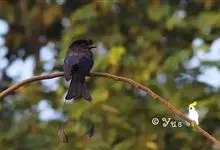 大盘尾:是雀形目卷尾科的鸟类,共有13个亚种。外形和小盘尾相似,但体型较大,体长约33厘米,加上延长的尾羽,可达66厘米。通体黑色,额部羽簇长而卷曲,形成直立向上的羽冠。尾叉状,…全部>>
