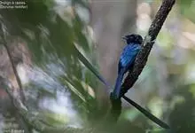 发冠卷尾是中型鸟类,体长28-35厘米。通体绒黑色缀蓝绿色金属光泽,额部具发丝状羽冠,外侧尾羽末端向上卷曲。栖息于海拔1500米以下的低山丘陵和山脚沟谷地带,多在常绿阔叶林、次生林或人工松林中活动。…全部>>