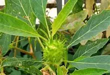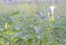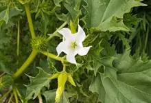 曼陀罗,茄科曼陀罗属一年生大型草本植物,全株光滑。有臭气;叶呈广卯形,边缘具不规则波状浅齿裂;花单生于枝杖间或叶腋,直立,有短梗;花萼是筒状裂片三角形,颜色为白色或淡紫色;果实为蒴果卵状,…全部>>
