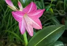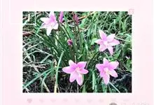 小韭兰学名韭菜莲又名风雨花、菖蒲莲、红玉帘和旱水仙,多年生草本,鳞茎卵球形,基生叶常数枚簇生,线形,扁平,花单生于花茎顶端,下有佛焰苞状总苞,花玫瑰红色或粉红色,蒴果近球形,种子黑色,花期夏秋。韭莲…全部>>