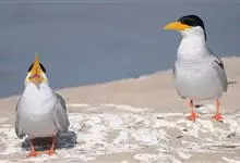 鸥嘴噪鸥,中型水禽,体长31~39厘米。夏羽额、头顶、枕和头的两侧从眼和耳羽以上黑色。背、肩、腰和翅上覆羽珠灰色。后颈、尾上覆羽和尾白色,中央一对尾羽珠灰色。尾呈深叉状。冬羽头白色,头顶和枕缀有灰色…全部>>