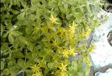 垂盆草别名石头菜、狗牙瓣、豆瓣菜等,为景天科景天属的多年生草本植物。不育枝及花茎细,匍匐而节上生根,直到花序之下;3叶轮生,叶倒披针形至长圆形,先端近急尖,基部急狭,有距;聚伞花序,花无梗,…全部>>