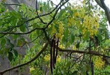 腊肠树:是豆科腊肠树属植物。落叶乔木,高可达15米;枝细长;树皮灰色,老时粗糙,暗褐色。叶长30-40厘米,小叶对生,薄革质,阔卵形,卵形或长圆形,边全缘,幼嫩时两面被微柔毛,老时无毛;叶脉纤细,…全部>>