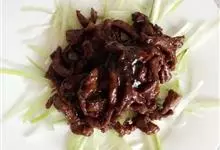 京酱肉丝,是一道知名度很高的菜肴,它是北京菜中的经典代表菜之一。制作时选用猪瘦肉为主料,辅以甜面酱、葱、姜及其它调料,用北方特有烹调技法“六爆”之一的“酱爆”烹制而成。 成菜后,咸甜适中,酱香浓郁…全部>>