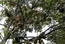 榴梿也叫做“榴莲”。是一种锦葵科榴梿属的常绿乔木。叶片长圆,顶端较尖;聚伞花序,花色淡黄;果实足球大小,果皮坚实,密生三角形刺,果肉是由假种皮的肉包组成,肉色淡黄,粘性多汁。…全部>>