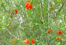 石榴是千屈菜科石榴属落叶灌木或乔木,一般植株高3-5米,少数可达到10米;枝顶常有尖锐长刺,幼枝有棱角但无毛,老枝近圆柱形;叶通常为对生,长圆状披针形;花大,…全部>>