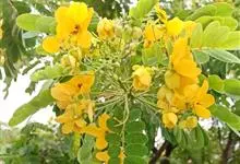 黄槐决明 H. S. Irwin & Barneby )是豆科决明属灌木或小乔木。黄槐决明分枝多,小枝有肋条;树皮光滑,灰褐色;嫩枝、叶轴、叶柄被微柔毛;叶轴及叶柄呈扁四方形;小叶长椭圆形或卵形,…全部>>