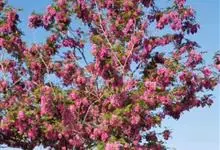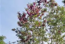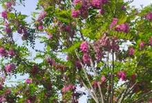 红花刺槐是豆科刺槐属的植物。其干皮深纵裂;枝具托叶刺,羽状复叶互生,叶片卵形或长圆形,具芒尖;基部圆形。花两性;总花序下垂;花冠粉红色,芳香;果条状长圆形,腹缝有窄翅。花期4~5月,果期9~10月。…全部>>