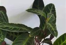绒叶肖竹芋 Lindl.)是竹芋科,肖竹芋属多年生中等大草本植物,株高可达1米。叶片长圆状披针形,不等侧,叶面深绿,有黄绿色的条纹,天鹅绒般,叶背幼时浅灰绿色,老时淡紫红色,头状花序,花冠紫堇色或白色,…全部>>