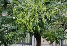 槐 Schott),豆科槐属的落叶乔木。树皮暗灰色,树冠球形,老时则呈扁球形或倒卵形。枝叶密生,羽状复叶。圆锥花序顶生,花蝶形,夏季开黄白色花,略具芳香。荚果肉质,念珠状不开裂,黄绿色,常悬垂树梢,…全部>>