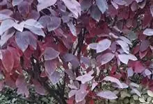 紫锦木是大戟科、大戟属的常绿乔木。叶圆卵形,主脉于两面明显,侧脉数对,边缘全缘,两面红色;花序生于二歧分枝的顶端,总苞阔钟状,裂片呈三角形,边缘具毛,腺体深绿色呈半圆形,…全部>>