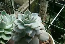蓝石莲是景天科、拟石莲花属的多肉植物。茎部粗壮,成熟植株茎部木质化。叶片莲座型密集排列,株径不会很大,叶片相对较薄,常年绿色,表面布有白色粉末,中部凹陷,呈倒水滴状。叶尖较尖,叶缘光滑无褶皱,…全部>>