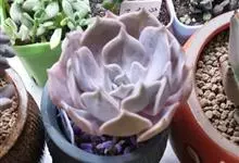 芙蓉雪莲是景天科拟石莲花属的植物。由于叶片表面覆盖着一层厚霜粉,通常呈现出白色;日照增多,温差增大后叶缘、叶尖会呈现出粉红色或橙红色。…全部>>