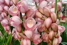 大花蕙兰,兰科兰属的常绿附生草本植物。大花蕙兰的假鳞茎椭圆形,粗大;根多为肉质圆柱状,粗壮肥大,大都呈灰白色;叶宽而长,下垂,浅绿色有光泽;花亭斜生,稍弯曲;花大,色泽艳丽,…全部>>