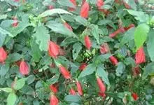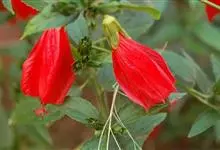 垂花悬铃花是锦葵科、悬铃花属常绿小灌木,外型略似朱槿,但叶片较为狭长浓绿;高30-60厘米,叶片互生,卵形或卵状矩圆形,单叶,有时浅裂,叶形变化较多,叶面具星状毛。花红色,花通常单生于上部叶腋处,下垂,…全部>>