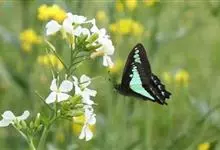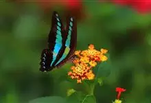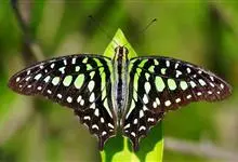青带凤蝶Graphium sarpedon ,又名青凤蝶,是最普遍的中型凤蝶,飞行速度很快。青带凤蝶的翅膀中央有许多浅蓝色的斑点,很整齐地排列成一条直线。这些斑点由上而下逐渐变大,就像一条青色的带子。全部>>