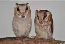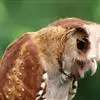 栗鸮:是鸟纲、草鸮科的猫头鹰。体长约29厘米,体重311-360克。是一种中等体型的红褐色鸮。其心形脸庞及时而竖起的“耳朵”与仓鸮甚似。上体红褐而具黑白点斑,下体皮黄偏粉具黑点,脸近粉色。虹膜深褐色,…全部>>