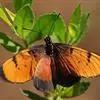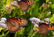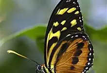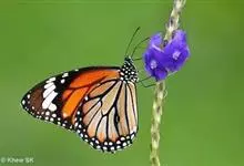 黑脉金斑蝶:翅阔8.6-12.4厘米。雄蝶较雌蝶为大。成年蝶颜色鲜艳,翅膀上有显眼的橙色及黑色斑纹,周围是宽阔的黑色边框,布有许多白色斑点。这种引人注目的着色是对捕食者的视觉警告,表示这个物种有毒;…全部>>