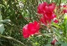 夹竹桃,又名红花夹竹桃、欧洲夹竹桃,是夹竹桃科夹竹桃属的一种常绿直立大灌木,枝条灰绿色,含水液。叶披针形,3叶轮生。聚伞花序顶生,花冠粉红至深红色,花冠漏斗状,有特殊香味。蓇葖果,圆柱形。种子长圆形,…全部>>