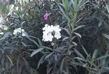 白花夹竹桃是夹竹桃科、夹竹桃属植物夹竹桃的栽培品种。常绿直立大灌木,枝条灰绿色;嫩枝条具稜,被微毛,老时毛脱落。叶3-4枚轮生,下枝为对生,叶面深绿,叶背浅绿色;侧脉纤细平行与中脉成直角;叶柄扁平,…全部>>