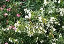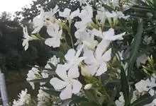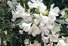 白花夹竹桃是夹竹桃科、夹竹桃属植物夹竹桃的栽培品种。常绿直立大灌木,枝条灰绿色;嫩枝条具稜,被微毛,老时毛脱落。叶3-4枚轮生,下枝为对生,叶面深绿,叶背浅绿色;侧脉纤细平行与中脉成直角;叶柄扁平,…全部>>