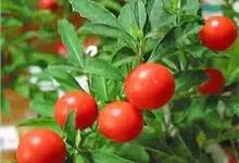 珊瑚樱是茄科茄属植物。株高达2米;植株无毛;叶窄长圆形或披针形,长1-6厘米,基部窄楔形下延,全缘或波状,侧脉4-7对;叶柄长2-5毫米;花单生,稀双生或成短总状花序与叶对生或腋外生,…全部>>