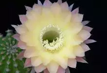 仙人球花 仙人掌科,仙人球属。植株单生或成丛。幼株球形,老株长成圆筒状,高可达75厘米,直径12-15厘米。球体暗绿色,具棱11-12。刺锥状,黑色,长1-1.5厘米。花着生于球体侧方,大型嗽喇叭状…全部>>