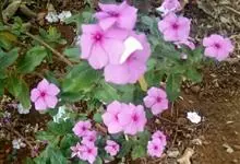 四季梅,又称 日日春、日日新、日春花、长春花、四时春、五瓣梅、雁来红、天天开等。四季不枯萎。夹竹桃科长春花属植物,常绿直立亚灌木。株高30-60厘米,叶对生,长椭圆形,深绿具光泽。花腋生,花冠高脚碟…全部>>