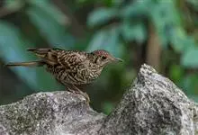 虎斑地鸫,是雀形目鸫科的中型鸟类。其成鸟自额至整个上体为鲜亮的橄榄褐色,羽片具棕白色羽干纹、金棕色次端斑和黑色边缘,在上体形成鲜明的黑色鳞状斑;翼上覆羽同背部,飞羽黑褐色;中央尾羽橄榄褐色,…全部>>