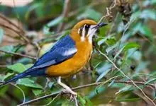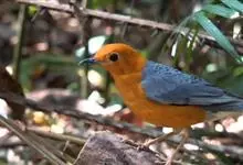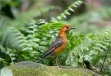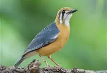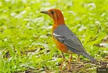橙头地鸫是鸫科、地鸫属中型鸟类,体长18-22厘米。整个头、颈和下体橙栗色,其余上体包括两翅和尾蓝灰色或橄榄灰色,翅上多具白色翅斑。虹膜褐色或棕褐色,嘴黑褐色或黑色,脚橙黄色或肉黄色。特征极明显。…全部>>