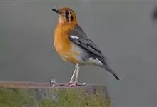 橙头地鸫是鸫科、地鸫属中型鸟类,体长18-22厘米。整个头、颈和下体橙栗色,其余上体包括两翅和尾蓝灰色或橄榄灰色,翅上多具白色翅斑。虹膜褐色或棕褐色,嘴黑褐色或黑色,脚橙黄色或肉黄色。特征极明显。…全部>>