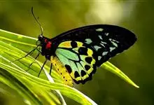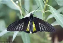 金裳凤蝶是凤蝶科、裳凤蝶属的动物。金裳凤蝶身体呈黑色,头、颈和胸侧有红毛,腹部有黑黄两色相间条纹,雄蝶前翅黑色,具黑天鹅绒光泽,各脉两侧灰白色,后翅金黄色,各室外缘有等腰三角形黑斑1枚,斑内侧有晕,…全部>>