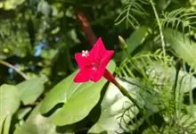 葵叶茑萝 Ooststr.)是旋花科、茑萝属植物,一年生草本,几无毛;茎缠绕,多分枝,无毛。叶掌状深裂,长5-10厘米。聚伞花序腋生,1-3花,总花梗粗壮,常较叶柄长,长达10-20厘米。蒴果圆锥形,…全部>>